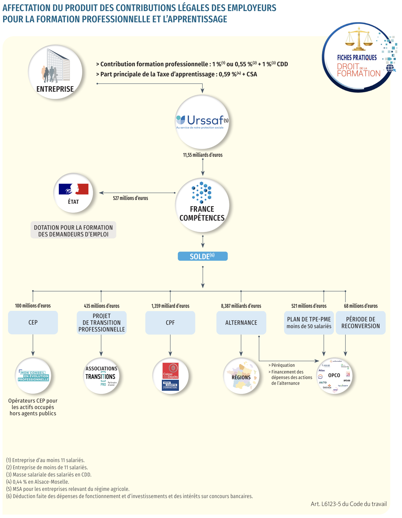 Accès abonnés des Fiches pratiques du droit de la formation : Fiche 1-5 Répartition des fonds de la formation professionnelle et de l'alternance